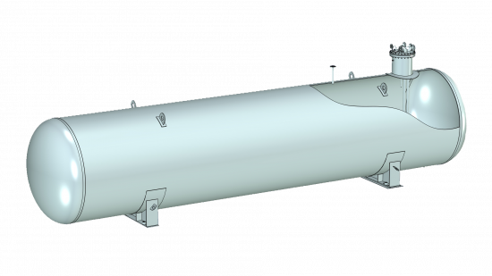 Газовая емкость для сжиженного газа представляет собой горизонтальный цилиндрический сосуд с эллиптическими днищами, который имеет несколько штуцеров (для наполнения, отбора жидкой и газовой фазы, для установки уровнемера и предохранительного клапана, для люка и т.д.)